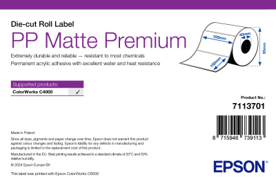 Epson PP Matte Premium, Die-Cut Roll,, label roll, synthetic, W 105mm, H 152mm