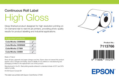 Extra lesklé šítky, kontinuální role pro tiskárky EPSON, 102mm x 60m Podrobný popis