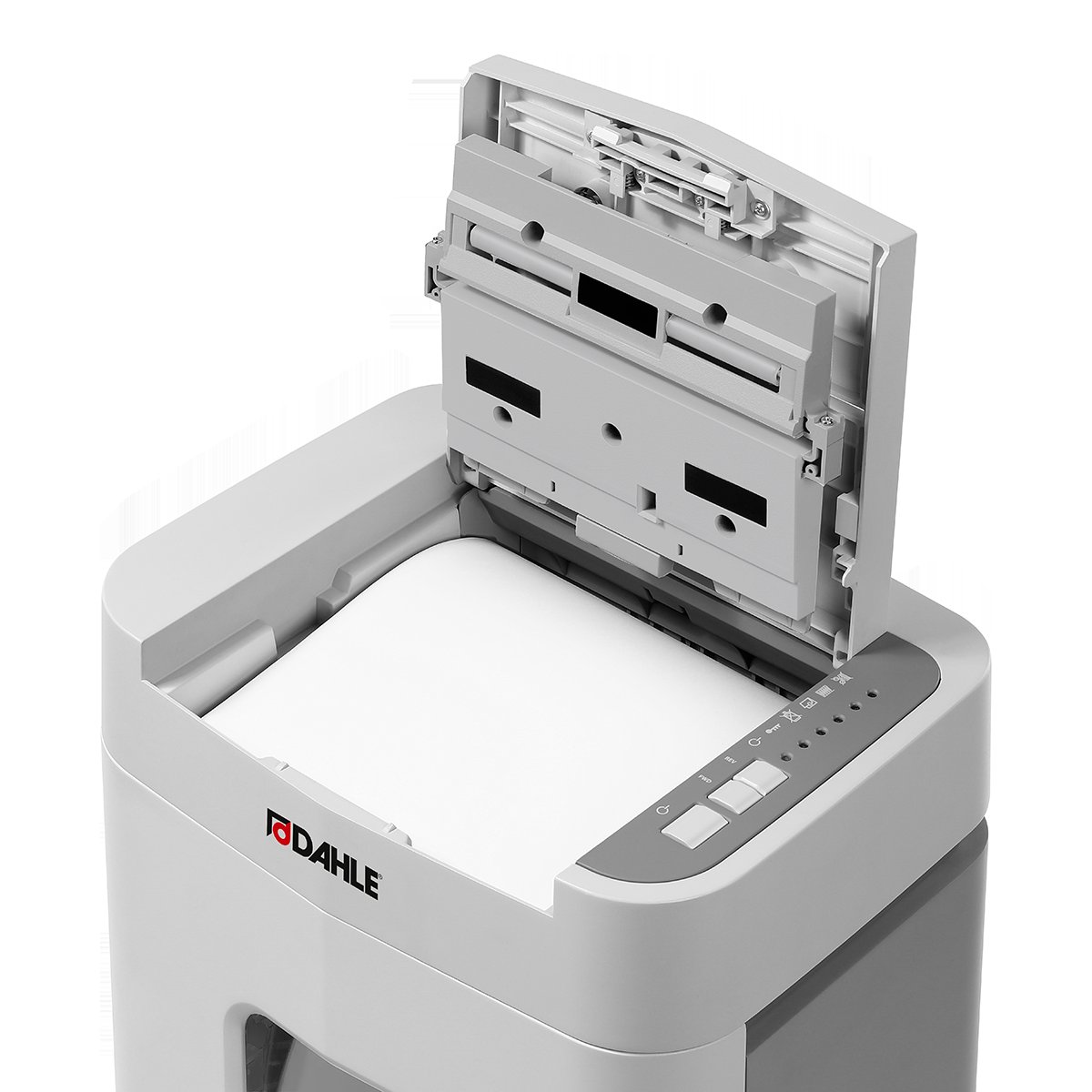 Stroj vytváří částice o velikosti 4 × 12 mm, což odpovídá úrovni bezpečnosti P-4. Navíc je vybaven velkoobjemovou nádobou na odpad s kapacitou 24 litrů – to znamená méně časté vysypávání.