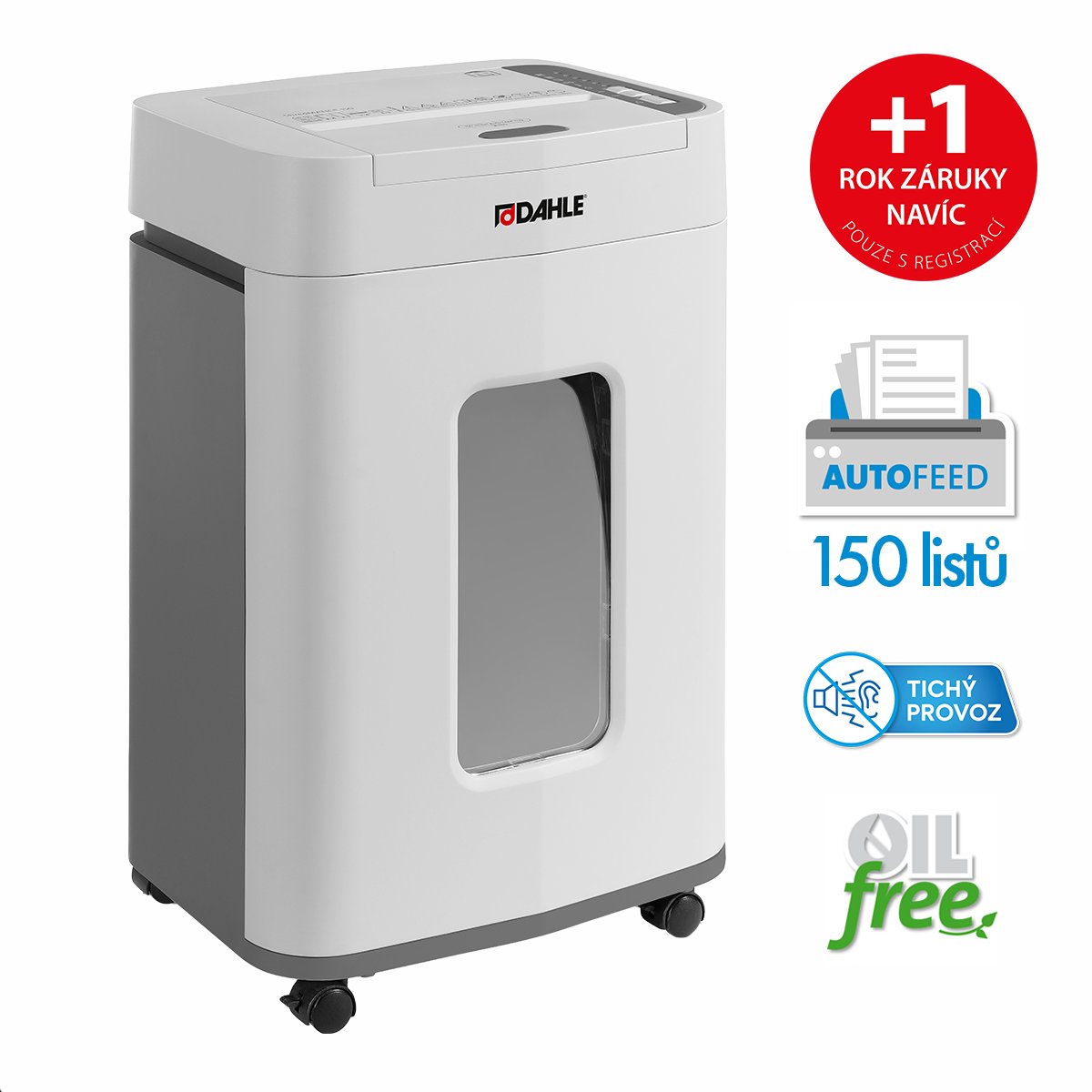 Skartovačka pro kanceláře, výkon: 10–12 listů (papír 80 g/m2) manuálně; až 150 listů (papír 80 g/m2) automaticky, řez 4 × 12 mm, objem koše: 24 l. Pouze 52 dB, rozměry (v x š x h): 578 x 369 x 287 mm, váha: 13,3 kg.